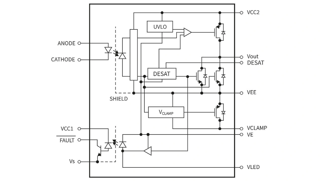 Smart-Gate-Treiber wie der TLP5214A erzeugen über einen Fehlerausgangspin ein isoliertes Signal, das den Steuerschaltkreis auf das Problem hinweist, während das sanfte Ausschalten im Fehlerfall (Soft Shutdown) automatisch aktiviert wird (Bild 5).