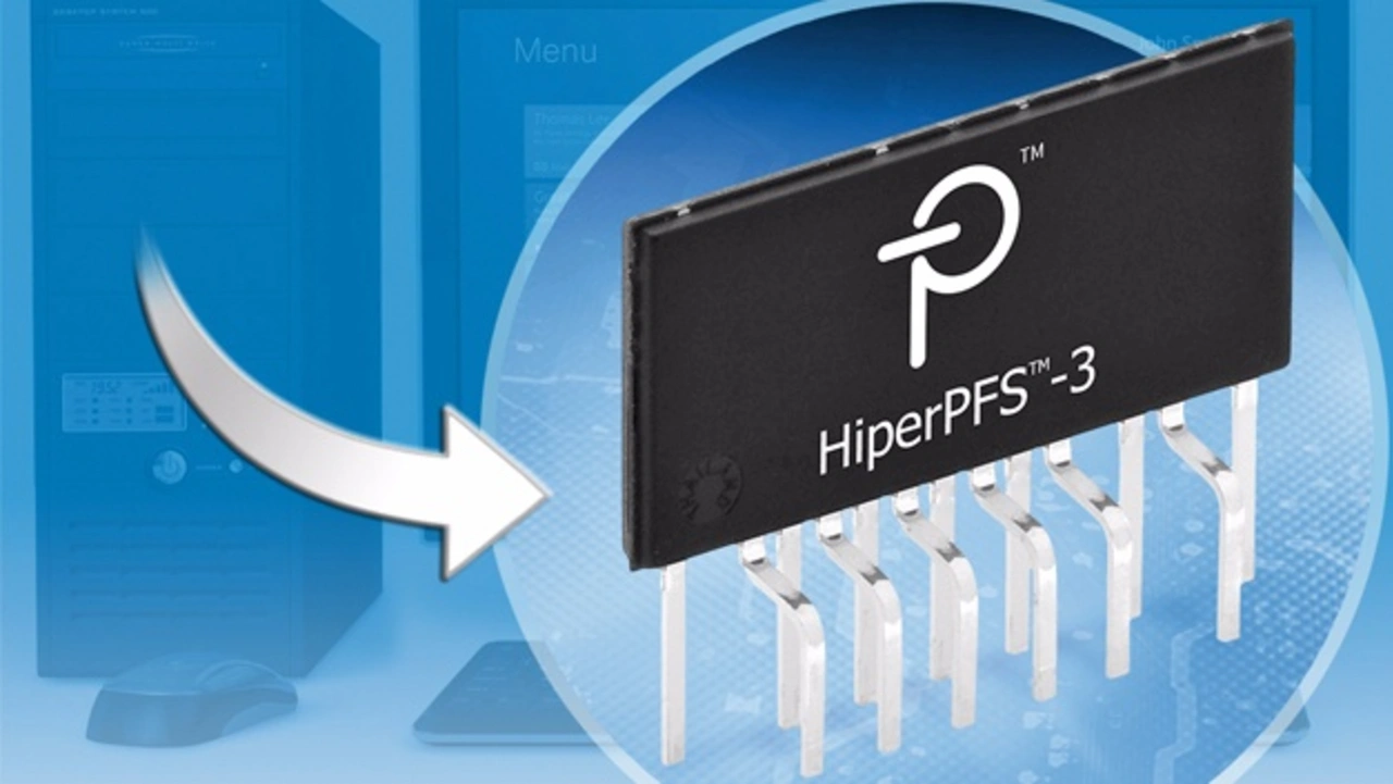 Das hat mehrere Vorteile. Dadurch, dass wir die Qspeed als Boost-Diode mit integrieren konnten, sind die Streuinduktivitäten extrem gering. Und deshalb ist der Wirkungsgrad sehr hoch: Aus der inzwischen dritten Generation der HiperPFS-Bausteine lassen sich 500 Watt bei einem Universaleingang herausholen und sogar bis zu tausend Watt bei 230 Volt! Und wie schon gesagt, man muss das Gehäuse nicht vom Kühlkörper galvanisch isolieren, da die offene Rückseite auf Masse liegt.