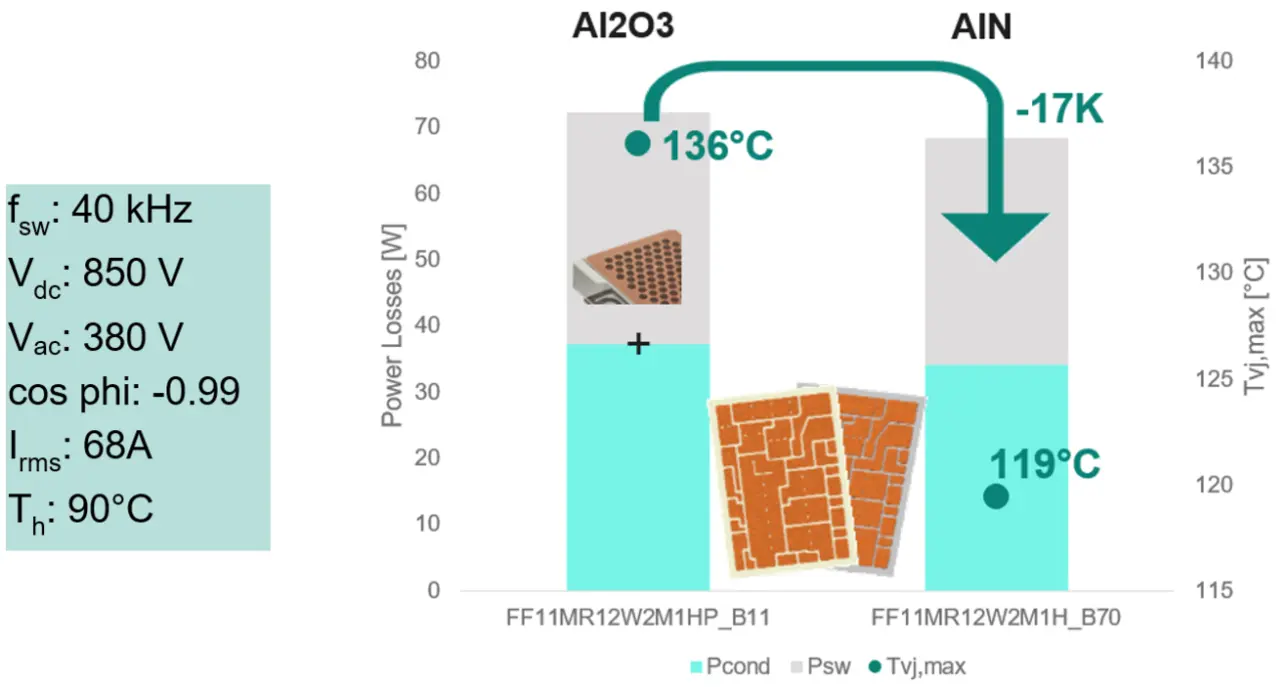 Um das Problem mit der Verschlechterung des Chip-Lots zu lösen, hat Infineon für die Easy1B- und Easy2B-Module ein Aluminiumnitrid (AlN)-Keramiksubstrat eingeführt und mit der SiC-MOSFET-Technologie kombiniert.