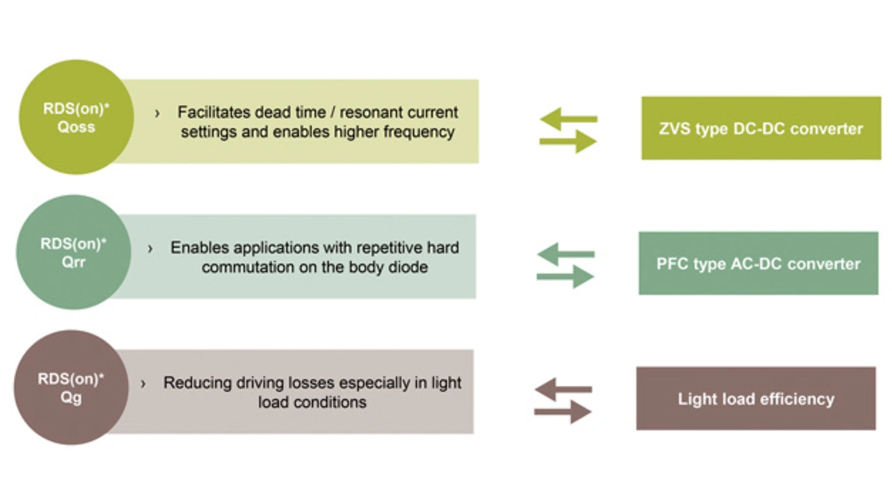 SiC hat gegenüber Silizium einige Vorteile, die sich aus den spezifischen Materialeigenschaften ergeben. So bietet die SiC-Technologie nicht nur eine hohe Elektronenbeweglichkeit, sondern verfügt im Vergleich zu Silizium auch über eine hohe kritische Durchbruchspannung, sodass kleinere Chips mit kürzerer Kanallänge hergestellt werden können. Infolgedessen ergibt sich bei einer bestimmten Nennspannung ein geringerer Durchlasswiderstand. Außerdem reduziere sich durch die kleinere Chipgröße auch die Kapazitäten des Bauteils. Da die Kapazitäten bei jedem Zyklus geladen und entladen werden müssen, verringern sich dadurch die Schaltverluste.