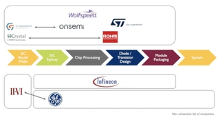 In der Zwischenzeit baut Rohm seine Kapazitäten sowohl bei Bauelementen als auch bei Wafern aus, nachdem das Unternehmen vor zehn Jahren SiCrystal übernommen hat, um sich vertikal zu integrieren. Und II-VI hat seine langfristige Perspektive präsentiert, indem es ein für die Automobilindustrie qualifiziertes 1200-V-Bauelement vorstellte und seine Partnerschaft mit General Electric erweiterte.