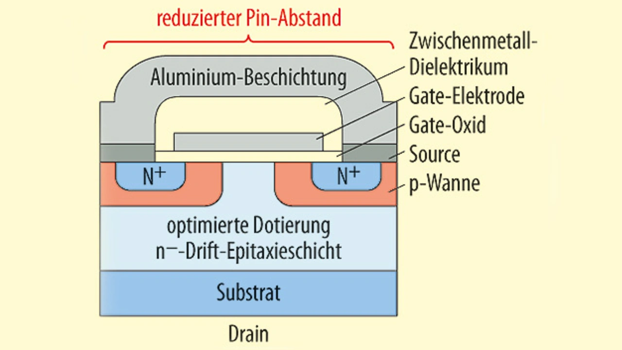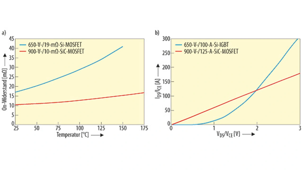 MOSFETs auf Basis von Siliziumkarbid (SiC) weisen im Vergleich zu Silizium-Leistungshalbleitern niedrige Leitungsverluste im moderaten Frequenzbereich auf. Das ist beispielsweise in Einsatzfeldern wie der Elektromobilität und der Antriebstechnik wichtig. In der Praxis wirkt sich das bei Elektrofahrzeugen in einer um bis zu 10 Prozent höheren Reichweite aus. Außerdem kann die Motorleistungssteuerung um bis zu 80 Prozent verkleinert werden.