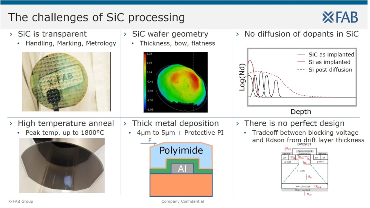 Um es zusammenzufassen: Siliziumkarbid-Wafer in einer Silizium-Foundry zu prozessieren ist eine ziemliche Herausforderung. Aber wir haben das gemeistert. Und dabei spreche ich nur von den technischen Herausforderungen, nicht von den kaufmännischen, wie dem geringeren Durchsatz bei den meisten Maschinen oder den hohen Wafer- und Substratpreisen.