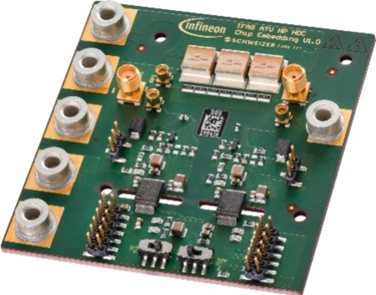 Um das volle Potenzial der CoolSiC-Technologie von Infineon auszuschöpfen, wird eine zu 100 Prozent elektrisch getestete Standardzelle (S-Zelle, Bild 1) in das Smart p2 Pack der Schweizer Electronic eingebettet. Diese Leiterplattentechnologie wird bereits für 48-V-Startergenerator-Anwendungen verwendet und erhöht im Vergleich zu herkömmlichen Methoden die Leistung um bis zu 60 Prozent. Das Smart p2 Pack verfügt über eine thermisch leitfähige, elektrisch isolierende Schicht, die das Systemdesign vereinfacht. Die Einbettung von 1200-V-MOSFETs von Infineon und Schweizer ist ein großer Fortschritt in der Hochvolt-Packaging-Technologie, der es ermöglicht, das volle Potenzial der CoolSiC-Technologie auszuschöpfen. Durch die Kombination der Technologien wird Folgendes ermöglicht: