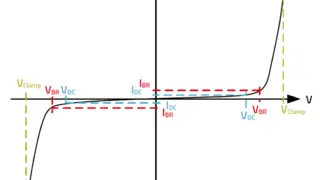 Dies ist die Spannungsschwelle, bei der die TVS-Diode beginnt, einen definierten Strom von 1 mA zu leiten, und wird auch als Durchbruchspannung bezeichnet. Der Wert von VBR nach Datenblatt sollte über der maximalen Betriebsspannung des zu schützenden Schaltkreises liegen, damit sich die TVS-Diode unter normalen Betriebsbedingungen des Gerätes im Sperrzustand befindet.