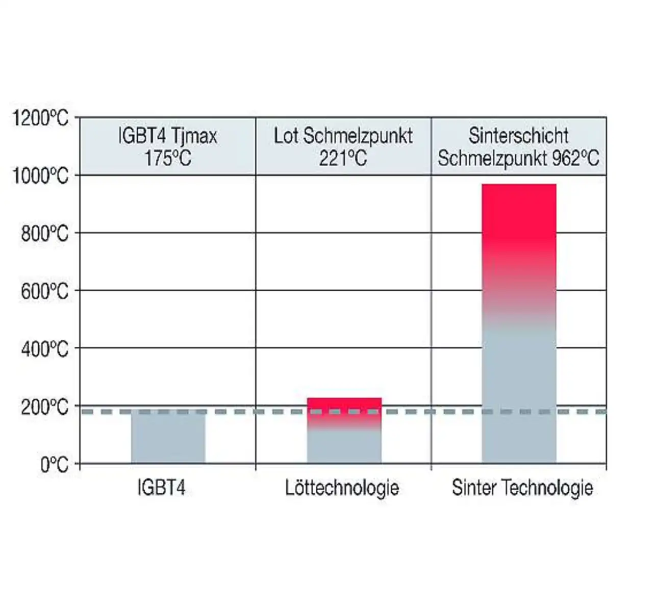 Normalerweise ist die Schwachstelle bei Windkraftanlagen nicht die Leistungselektronik, sondern mechanische Komponenten wie beispielsweise Lager. Die Sinterverbindung ist dennoch notwendig, um die Chiptemperaturen der neuen IGBT-Generationen nutzen zu können. Aus der Materialwissenschaft kommt der Begriff der homologen Temperatur, die das Verhältnis der tatsächlichen Temperatur zur Schmelztemperatur des Werkstoffs darlegt.