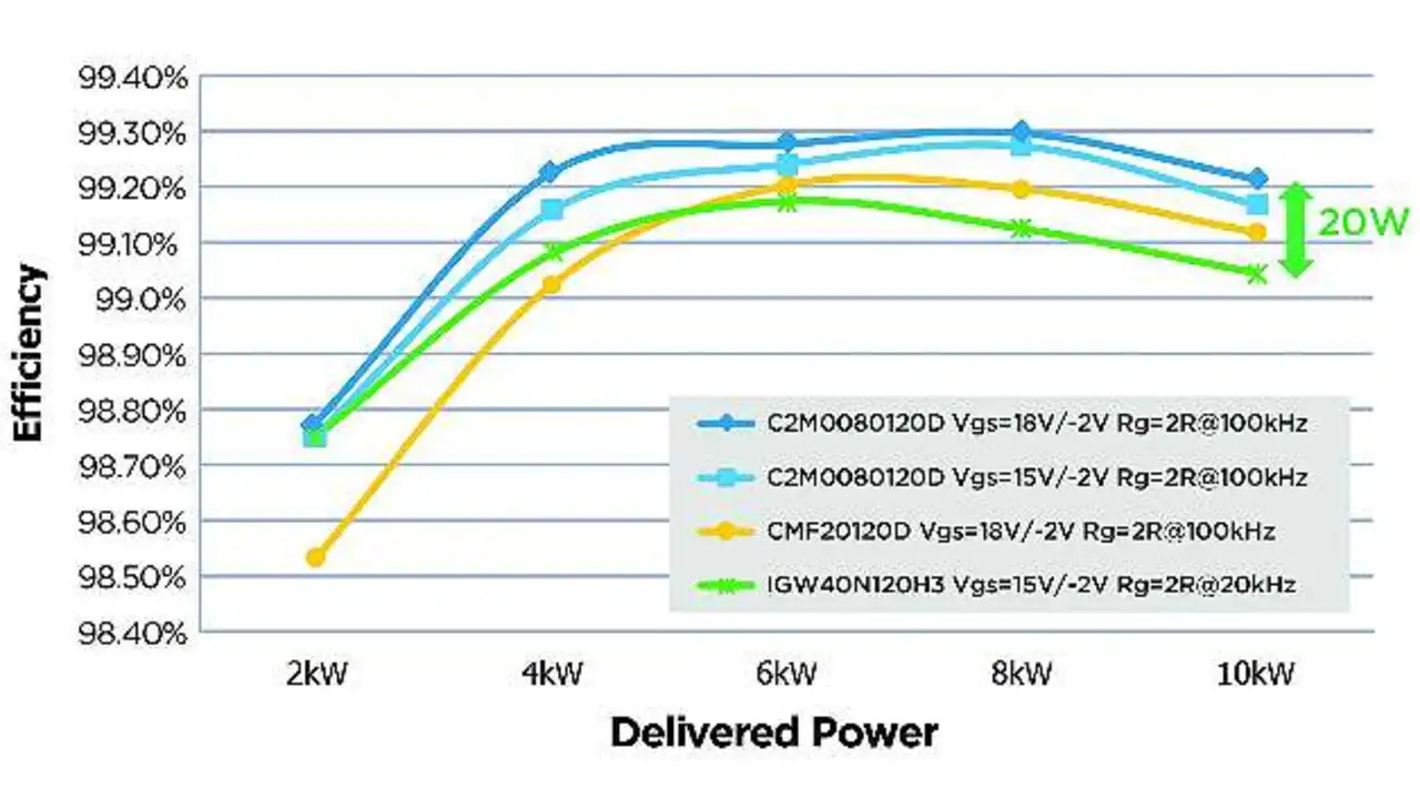 MOSFETs auf der Basis von Siliziumkarbid (SiC) gibt Leistungselektronikern die Gelegenheit, die Energieeffizienz ihrer Systeme auf ein Niveau zu heben, das mit den existierenden Siliziumbausteinen nicht erreichbar war. Dank dieser Effizienzsteigerung gelang es den Entwicklern, die Verlustleistung zu reduzieren. Damit konnten sie beispielsweise den Energieertrag von Wechselrichtern sowohl für den PV-Bereich (Fotovoltaik) als auch für andere Arten erneuerbarer Energien verbessern und außerdem die Kosten und die Komplexität der Wärmemanagement-Lösungen verringern.