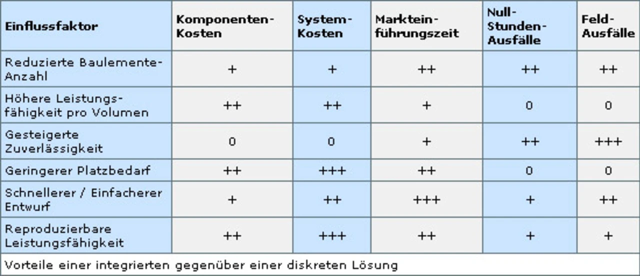 Es gibt Anwendungen, in denen ein integriertes Modul keinen offensichtlichen Vorteil bringt. Dies sind typischerweise Anwendungen, in denen genug Platz vorhanden ist, in denen kein Bedarf zur Erhöhung der Systemleistung besteht, oder wo Zuverlässigkeit kein großes Problem darstellt. Die Analyse der gesamten Kosten eines solchen Systems (inklusive der Kosten der einzelnen Komponenten wie auch der Kosten für Entwicklung, Fertigung und natürlich Betrieb des Gerätes sowie Kosten für Null-Stunden- und Feld-Ausfälle) zeigt jedoch, dass diskrete Lösungen signifikant teurer als erwartet ausfallen, insbesondere wenn alle Kosten-Komponenten berücksichtigt werden.