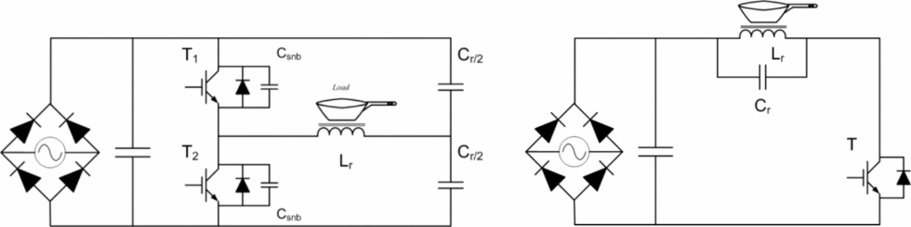 QR-Wandler wiederum werden aufgrund ihres kosteneffizienten Aufbaus häufig in Induktionsherden mit geringer Leistung (unter 2 kW Spitzenleistung) eingesetzt.