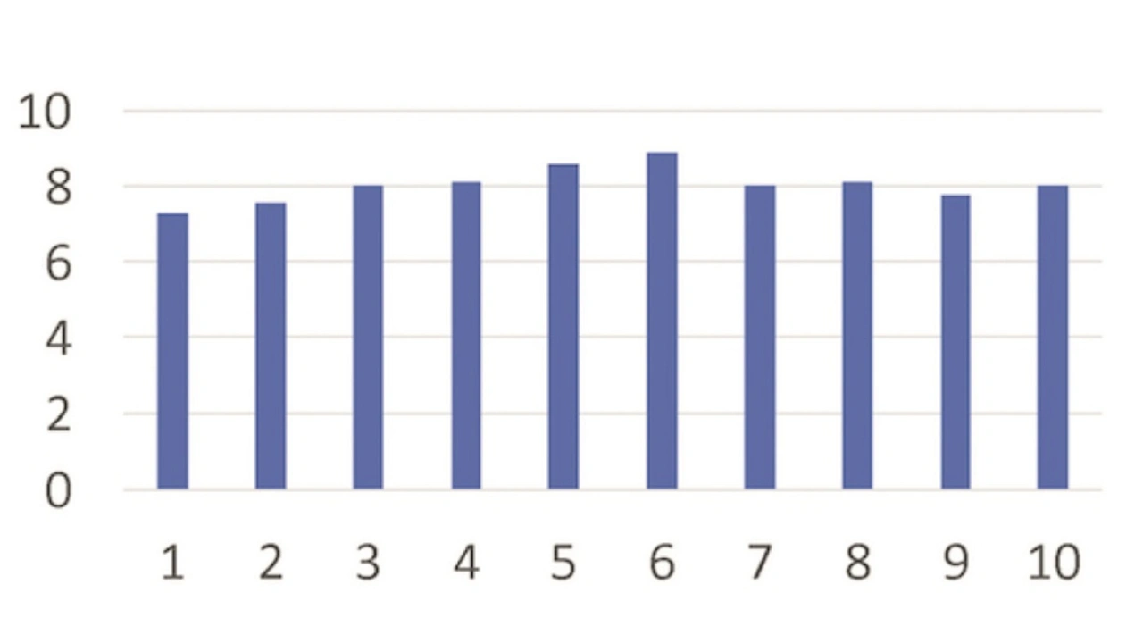 Bild 2 zeigt das Oszillogramm der Kurzschlussprüfung bei zehn Prüflingen bei 600 V Drain-Source-Spannung und 20 V Gate-Spannung bei Raumtemperatur. Der Kurzschlussstrom liegt um die 250 A, die Kurzschlussfestigkeit und die kritische Energie für den zerstörerischen Ausfall verteilen sich in einem engen Fenster um etwa 7 µs (Bild 3) bzw. 0,75 J (Bild 4).