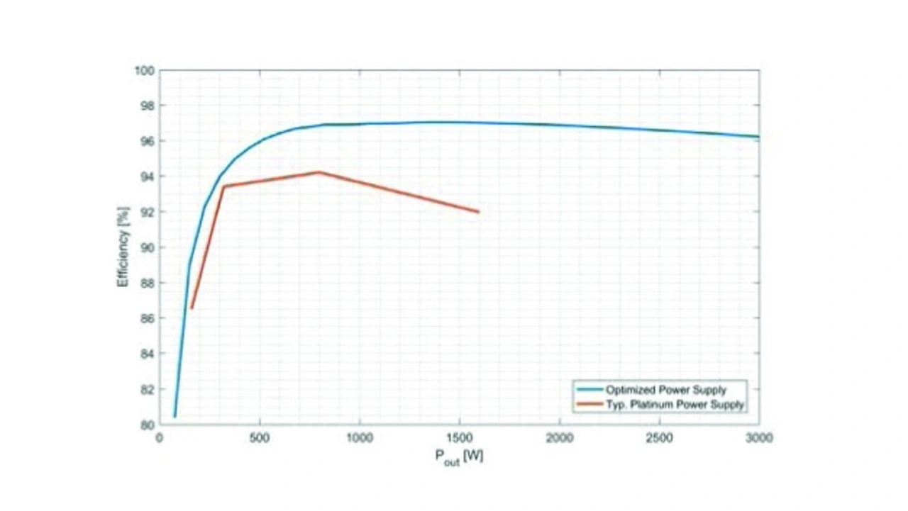 Das Ergebnis zeigt deutlich einen Weg auf, um 3 kW in einem gegebenen Formfaktor wie dem 68 mm × 41 mm × 184 mm großen Flex-Slot liefern zu können. Im Vergleich zu Standardlösungen mit 1,6 kW in diesem Formfaktor verdoppelt sich nicht nur die Leistung fast, sondern der Wirkungsgrad steigt im oberen Leistungsbereich um etwa vier Prozentpunkte. Dadurch bleiben die absoluten Verluste im Netzteil bei Volllast trotz doppelter Ausgangsleistung nahezu konstant (Bild 8).