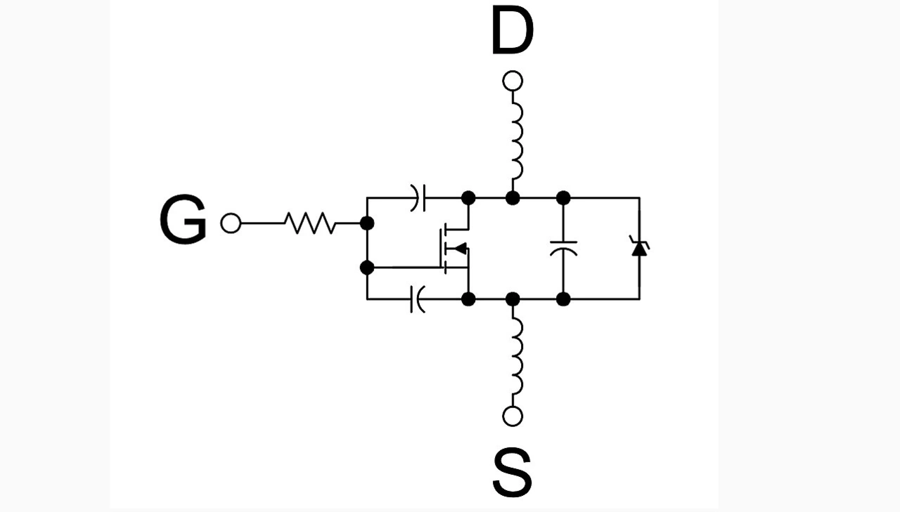 Wäre das MOSFET-Gate eine rein ohmsche Last, wäre es relativ einfach, diese Ladung zu liefern bzw. abzuleiten. Allerdings hat dieses Bauteil interne Streukapazitäten und -induktivitäten, was auch auf die Zuleitung zwischen dem Treiber und dem MOSFET zutrifft (Bild 1).