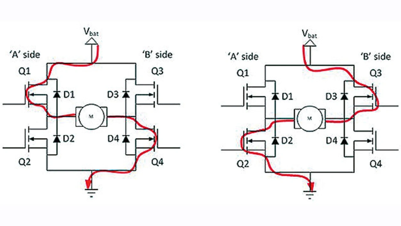 Bei den weitverbreiteten Halb- und Vollbrücken-Topologien, bei denen die Last zwischen einem oberen und einem unteren MOSFET-Paar platziert ist (Bild 3), kann es zu Kurzschlüssen und sogar zu dauerhaften Schäden kommen, wenn beide MOSFETs auf derselben Seite der Brücke auch nur für einen Augenblick gleichzeitig eingeschaltet werden. Dieses Phänomen wird als Durchschlag (Shoot through) bezeichnet.
