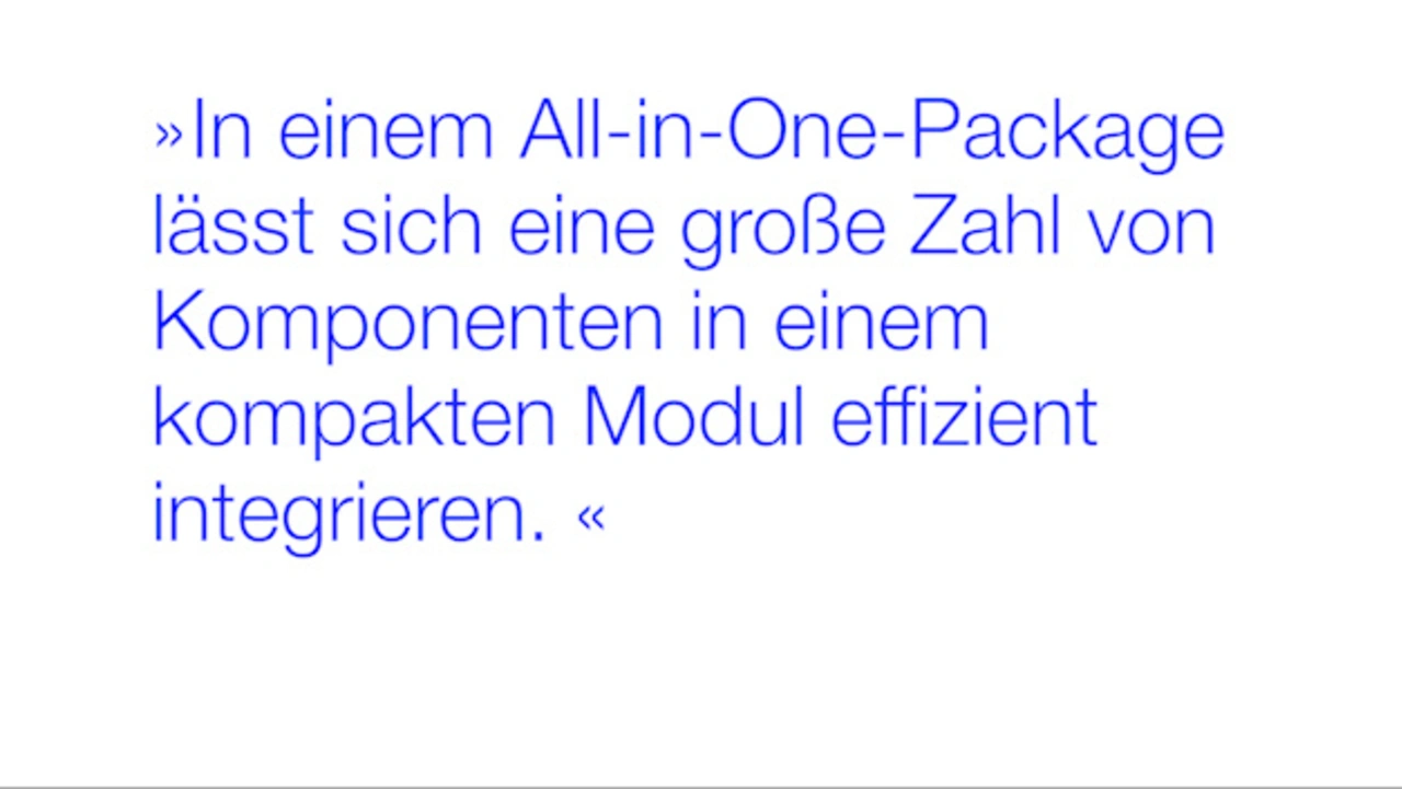 Das All-in-one-Package ist – frei nach Aristoteles – als Ganzes mehr als die Summe seiner Teile, und benötigt daher viele aufeinander abgestimmte Techniken und Prozesse. Andererseits ermöglichen moderne Packaging-Techniken eine kosteneffiziente, flexible Miniaturisierung auf einer höheren Ebene.