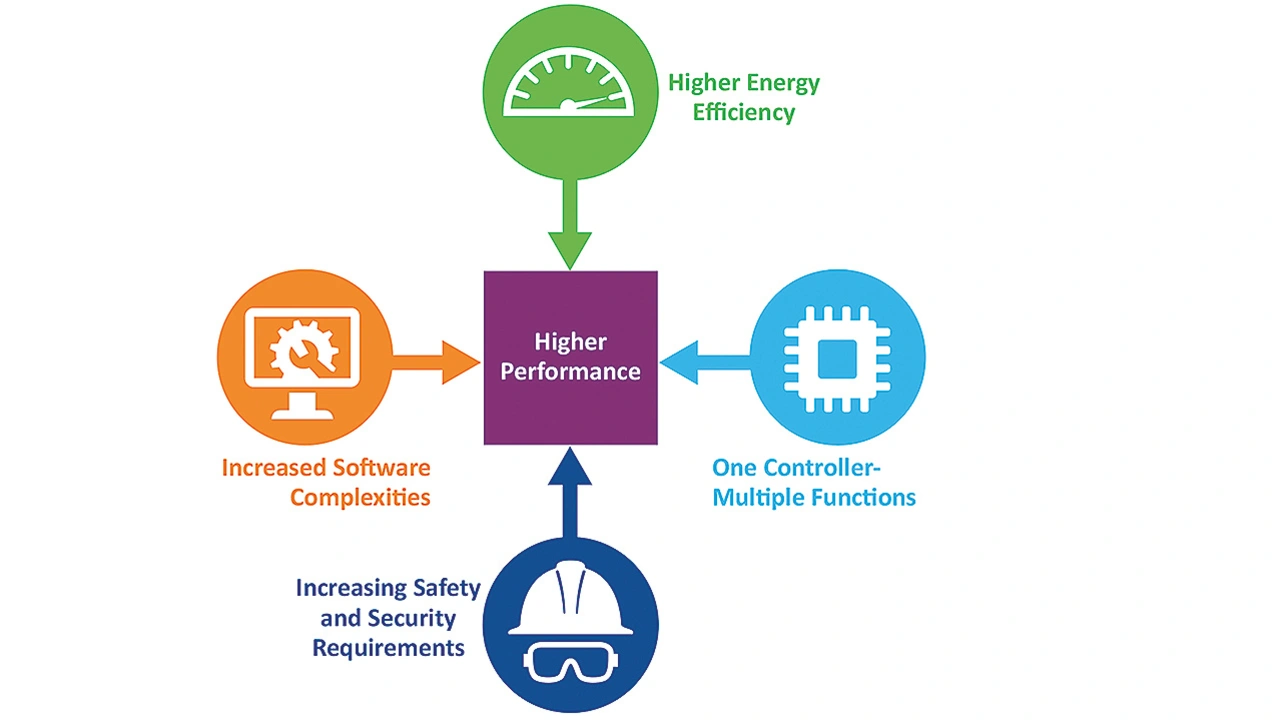 Moderne MCUs müssen eine ganze Palette an Herausforderungen adressieren, angefangen bei der zunehmenden Softwarekomplexität bis hin zu einer höheren Energieeffizienz. Sie müssen außerdem über integrierte Peripherieeinheiten für multifunktionale Fähigkeiten verfügen und strenge Sicherheitsstandards erfüllen, und das sowohl im Safety- als auch im Security-Bereich.