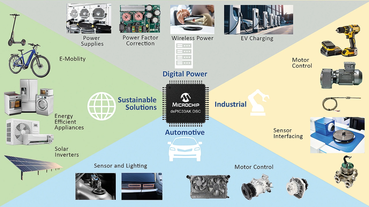 Die neuen dsPIC33A DSCs tragen dazu bei, die Leistungsfähigkeit von Echtzeitsteuerungen in verschiedenen Bereichen zu verbessern (Bild 5):