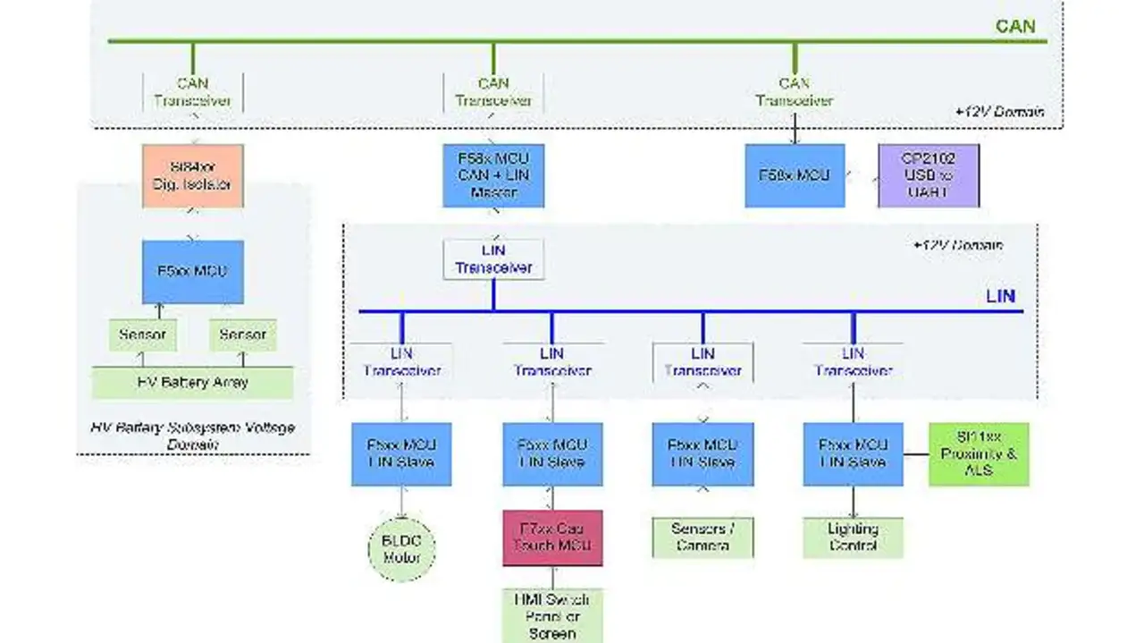 Eine CAN-2.0-Engine, die 32 diskrete Message-Objekte bietet, kann umfangreichen Netzwerk-Datenverkehr unterstützen. Durch die Inte-gration eines LIN-2.1-Controllers auf Hardwarebasis (nicht Software-emuliertes LIN) können Automotive-Entwickler den Netzwerkdurchsatz weiter steigern, denn die Kombination aus einem 8-Byte-Message-Puffer, Hardware-Synchronisation und Prüfsummenerzeugung macht wertvolle CPU-Ressourcen frei und ermöglicht komplexere LIN-Topologien.