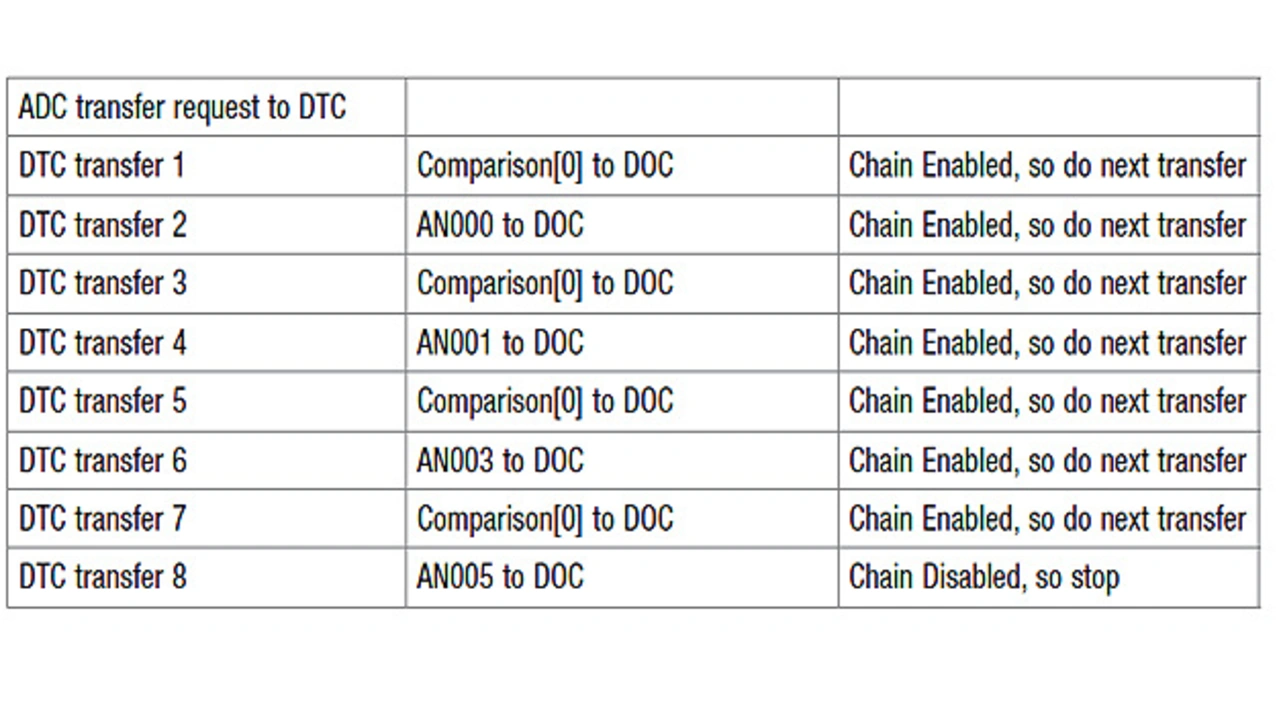 Wird der DOC mit Peripheriekomponenten wie dem DMAC oder dem DTC kombiniert, kann die Datenübertragung an den DOC automatisiert werden. Damit lässt sich ein System realisieren, das in der Lage ist, Entscheidungen auf der Grundlage von Daten aus nahezu jeder Quelle zu treffen. Dies kann ohne CPU-Interventionen erfolgen, selbst wenn die CPU im Ruhezustand ist. Damit kann viel schneller reagiert werden. Es muss nicht mehr darauf gewartet werden, bis die CPU unterbrochen wird, um dann auf das Ereignis zu reagieren.