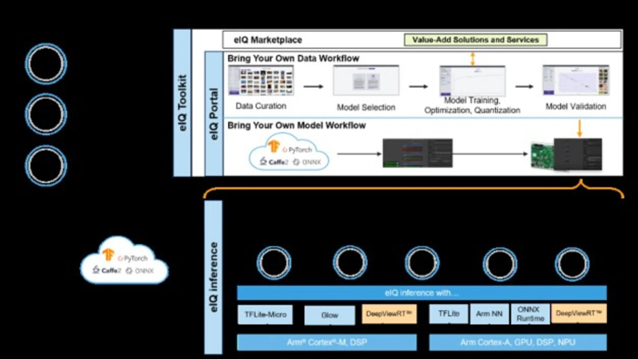 Die eIQ ML-Software, 2018 eingeführt, wurde ständig weiterentwickelt, um Anwendungen auf Systemebene und ML-Algorithmen für die i.MX-Serie von NXP zu unterstützen – angefangen bei den stromsparenden i.MX RT Crossover-Mikrocontrollern bis hin zu den Multicore-Prozessoren i.MX 8 und i.MX 8M, die auf Cortex-M- und Cortex-A-Kernen basieren.