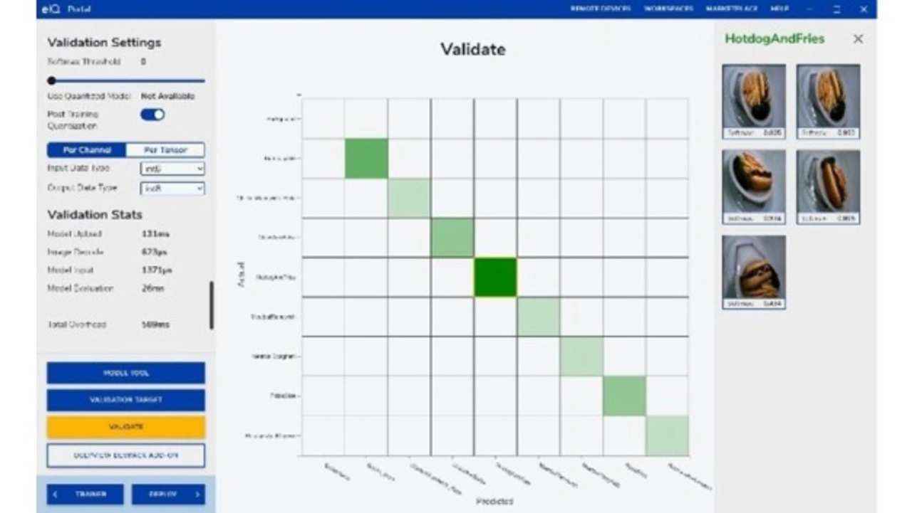 Mit dem eIQ Portal können Entwickler ML-Modelle einfach erstellen, optimieren, debuggen, konvertieren und exportieren. Sie können damit aber auch Datensätze und Modelle aus den ML-Frameworks TensorFlow, ONNX und PyTorch importieren. Darüber hinaus können sie ein Modell mit eigenen Daten mithilfe des »BYOD-Flows« (BYOD: Bring your own data) trainieren, ein vortrainiertes Modell aus einer Datenbank auswählen, oder ein vortrainiertes Modell mit dem »BYOM-Flow« (BYOM: Bring your own model) importieren. Dazu gehören zum Beispiel auch die Erkennungsmodelle von Au-Zone Technologies. Mit dem einfachen BYOM-Prozess können Entwickler ein trainiertes Modell mit öffentlichen oder privaten Cloud-basierten Tools erstellen und dann das Modell in das eIQ-Toolkit übertragen, um es auf der entsprechenden Silizium-optimierten Inferenzierungs-Engine auszuführen.