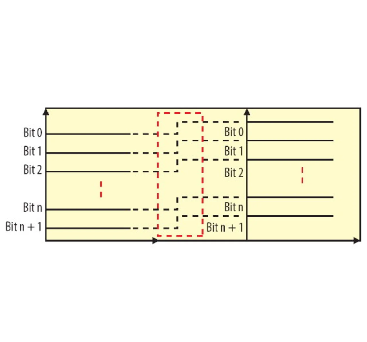 Die GPIO sind dagegen direkt mit dem I/O-Bus des Cortex-M0+ verbunden. Durch programmierbare Pullup- und Pulldown-Wiederstände können die Eingänge auf einen definierten Wert gezogen werden. Dank des Cortex-M0+ und seiner verbesserten I/O-Schnittstelle können mit einer Instruktion bis zu 18 I/O-Pins umgeschaltet werden (Bild 2) und das mit der halben Core-Taktfrequenz. Desweiteren kann man Bitmuster von bis zu 8 Eingängen mit einem vordefinierten Wert vergleichen.