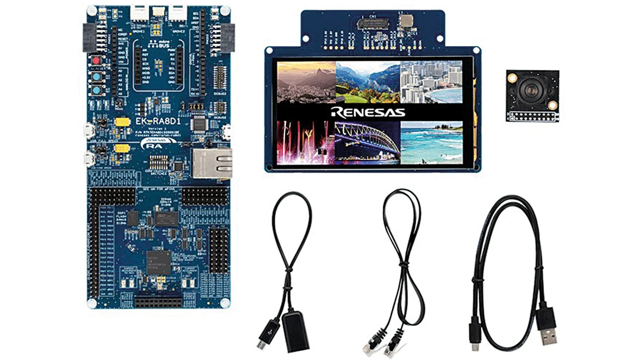 Darüber hinaus können Entwickler mithilfe der Quick Start Example Projects (QSEP), die Renesas für jede MCU bereitstellt, die Einstiegshürden für diese neuen Peripherien senken. Diese QSEPs sind entsprechend konzipiert, dass sie problemlos auf dem RA8D1-Evaluierungskit ausgeführt werden können und dienen als umfassende Sammlung von aufschlussreichen einfachen Demos. Das in Bild 5 gezeigte RA8D1-Evaluierungskit mit einem handelsüblichen CMOS-Kameramodul OV3640 von Arducam kann 15 Bilder pro Sekunde in QXGA-Auflösung (2048 x 1536) aufnehmen. Es bietet zusammen mit einem 4,5-Zoll-WVGA-TFT-Display mit Hintergrundbeleuchtung und kapazitivem Touch eine ideale Plattform für Tests und Simulationen.