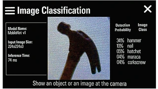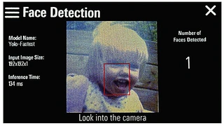 Auf dem EK-RA8D1-Board sind bereits eine Reihe von innovativen Anwendungen vorinstalliert (Bild 6), darunter zwei KI-Anwendungsfälle: Gesichtserkennung und Bildklassifizierung. Bild 7 zeigt eine Demo zur Bildklassifizierung mit einem MobileNetV1-Modell. Dies wurde auf dem ImageNet-Datensatz trainiert und weist eine beeindruckende Inferenzlatenz von 74 ms auf. Die Demo zur Gesichtserkennung in Bild 8 nutzt das schnellste Modell von You Only Look Once (YOLO), um Begrenzungsrahmen auf dem Gesicht zu erkennen und zu zeichnen. Die Inferenzlatenz beträgt hierbei lediglich 134 ms.