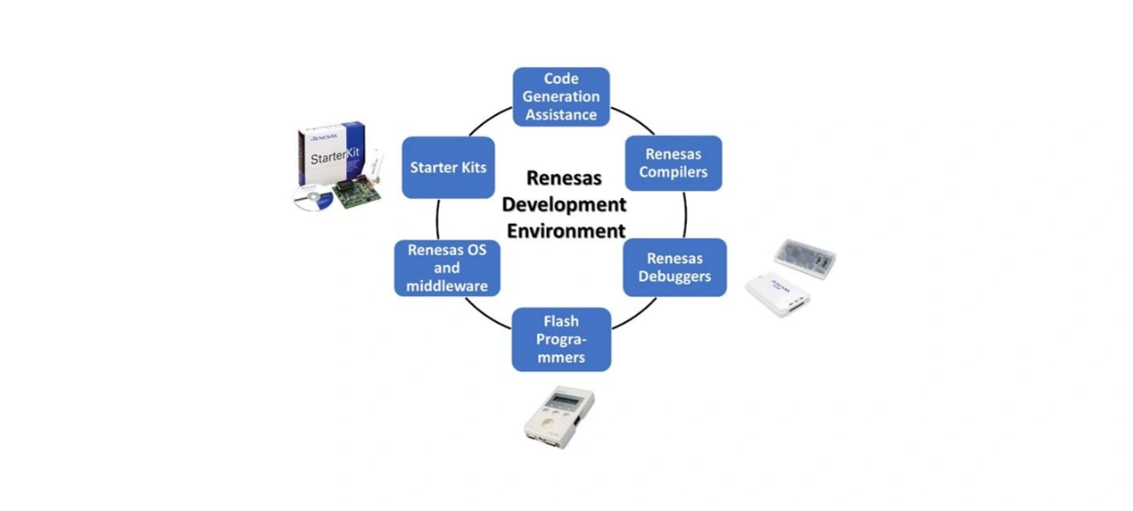 Renesas stellt eine komplette Entwicklungsumgebung für eine schnelle und zuverlässige Produktentwicklung bereit. Die Entwicklungsumgebung bietet dedizierte Lösungen für jede wichtige Phase der Software- und Hardwareentwicklung.