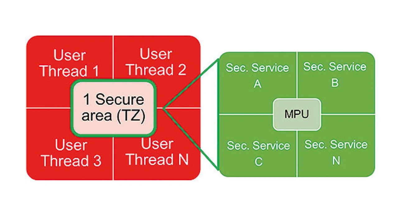 Es stellt sich die Frage, ob bisher irgendein Security-bezogenes Ziel erreicht wurde? Eigentlich noch nicht. Die TrustZone kann Application Threads, die im sicheren Modus ausgeführt werden, von den nicht sicheren isolieren. Sie bietet aber keine Security per se und kann die Legitimität eines Zugriffs nicht erzwingen. Sie verhindert eher unbeabsichtigte Nutzung oder direkten Zugriff.