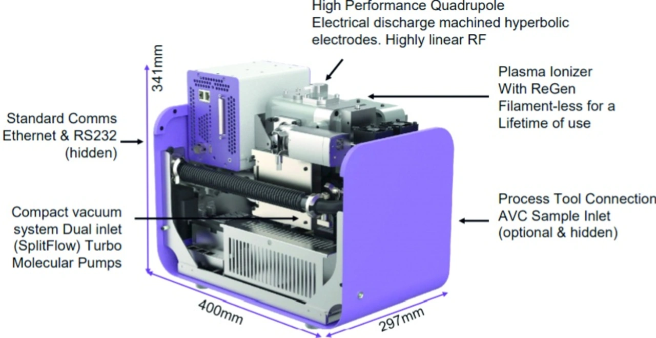 Doch was unterscheidet Aston von den bisherigen Metrologie-Systemen? Vor allem können Aston korrosive Gase, die während vieler Prozesse entstehen, nichts anhaben. Um zu verstehen, warum das so wichtig ist, ein kurzer Blick auf die Methode, die bisher verwendet wurde. Grundsätzlich besteht der Residual Gas Analyser (RGA) aus dem Sensor, der Interface-Box und der Steuereinheit.