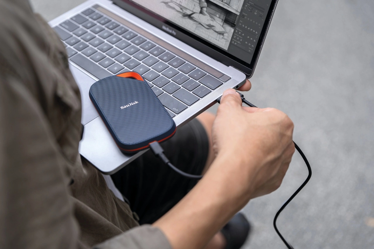Dennenwaldt: Viele denken bei Smartphone-Speicher an Speicherkarten, aber es gibt auch eine neue Generation von portablen Solid-State Drives (SSDs). Auf der CES haben wir eine neue tragbare SSD vorgestellt, die SanDisk Creator Phone SSD, die sich magnetisch an Magsafe-kompatiblen iPhones befestigen lässt. Ebenfalls neu ist unser erstes USB4-Produkt, die SanDisk Extreme PRO mit USB4, eine leistungsstarke externe SSD, die eine Lesegeschwindigkeit von bis zu 3.800 MB/s erreicht. Was die Kapazität betrifft, erreichen die tragbaren SSDs jetzt bis zu 8 TB.