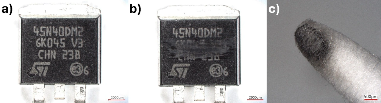 Die Verwendung von Blacktopping zur Aufarbeitung alter Bauteile, die anschließend als neu verkauft werden, ist seit Jahren ein bekanntes Phänomen. Zur Identifizierung dieser Bauteile sind diverse Methoden in der Fachliteratur dargelegt. Diese Methoden umfassen meist das Anlösen von manipulativ aufgebrachten Beschichtungen mittels Lösungsmittel oder das Aufspüren charakteristischer Farbveränderungen am Gehäuse, die auf das Blacktopping hindeuten. Eine führende Methode zum Nachweis von Blacktopping ist der Device Surface Test, wie im Standard IDEA-STD-1010 beschrieben. Dabei wird ein mit Aceton getränktes Wattestäbchen über die Bauteiloberfläche geführt, um die Blacktopping-Beschichtung teilweise zu lösen und zu entfernen. Der Nachweis erfolgt durch die Analyse des Wattestäbchens auf Materialabrieb und eine Untersuchung der Bauteiloberfläche vor und nach der Durchführung des Tests.