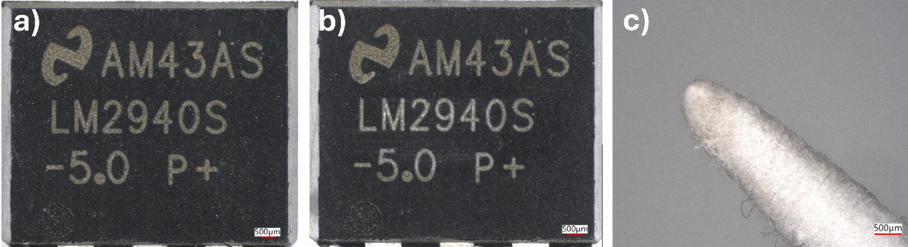 Die bereits durch Normen definierten Standardmethoden weisen eine sehr gute Erkennungswahrscheinlichkeit für ver- oder gefälschte elektronische Bauteile auf. Jedoch stoßen diese Methoden an ihre Grenzen, wenn neue, lösemittelbeständige Fälschungstechniken verwendet werden. Solche Fälschungen können jedoch präzise und mit vergleichsweise geringem Aufwand durch die Anwendung der FTIR-Spektroskopie nachgewiesen werden. Ein bedeutender Vorteil dieser Methode liegt darin, dass sie im Reflektionsmodus als nicht zerstörend eingestuft wird und somit ein größeres Los von Bauteilen untersucht werden kann. Zudem ermöglicht sie eine hundertprozentige Prüfung hochpreisiger Bauteile, um die Zuverlässigkeit der finalen Baugruppe zu gewährleisten.