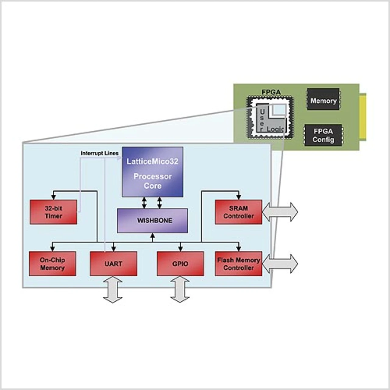Die fehlende Sichtbarkeit des Codes und das Problem vom Anbieter vorangetriebener Entwicklungsprioritäten löst dieser Ansatz nicht. Ein Open-Source-Ansatz wie ihn beispielsweise Lattice Semiconductor vor kurzem für seine Soft-Mikroprozessoren »LatticeMico32« (Bild 1) und »LatticeMico8« gewählt hat, verspricht die negativen Effekte zu beheben, die im Rahmen anderer Lizenzierungsmodelle auftreten. Open-Source ermöglicht ein direktes Betrachten des Codes, sodass Anwender dessen Funktion verstehen und ihn optimieren können. Außerdem bietet dieses Lizenzmodell den Entwicklern die Flexibilität, Code-Fixes zu implementieren, und es ermuntert die Anwender, ihre Verbesserungen der Community zugängig zu machen. Open-Source ist kostenlos, und es ermöglicht – der vielleicht wichtigste Faktor – Portabilität, also eine Implementierung in jeder beliebigen FPGA-Architektur oder in anderen Bausteinen, beispielsweise in ASICs.