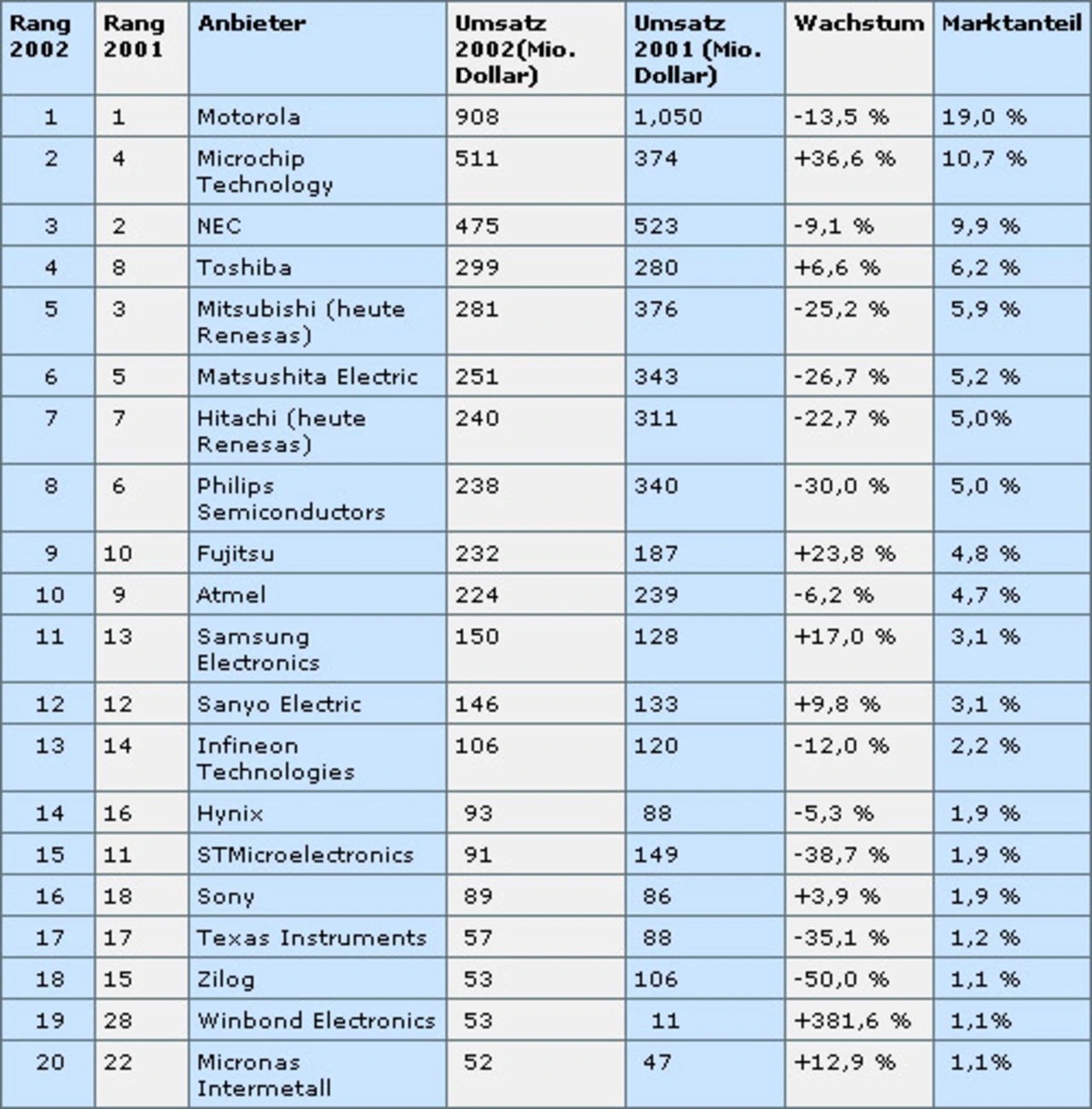 [5] Renesas Technology (Hitachi und Mitsubishi Electric): http://www.renesas.com