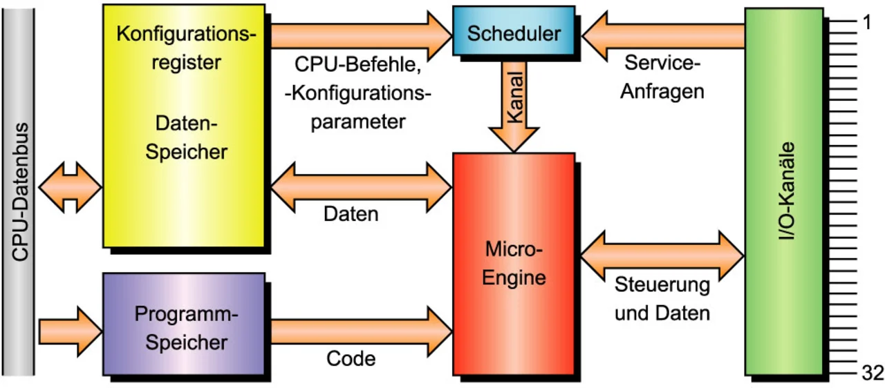 Bild 1. Die eTPU ist bereits ein kleiner Mikrocontroller für sich, der speziell auf anspruchsvolle Timing-Anwendungen zugeschnitten wurde.