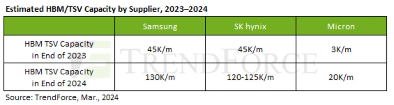 Gegenüber den DDR5-DRAMs gleicher Speicherkapazität liegt die Die-Fläche der HBM-DRAMs um 35 bis 45 Prozent höher. Die Ausbeute einschließlich der Through-Silicon-Via-Packaging-Technik, die erforderlich ist, um die DRAMs in den HBM-Gehäusen übereinander zu stapeln, liege um 20 bis 30 Prozent unter der von DDR5-DRAMs. Der Herstellungsprozess der HBMs nehme um 1,5 bis 2 Monate mehr Zeit in Anspruch. Vom Wafer-Start bis zum anschließenden Packaging gingen über zwei Quartale ins Land. Also müssten die Anwender die HBMs früher ordern. Die meisten Aufträge für 2024 seien bereits bei den Herstellern eingegangen.