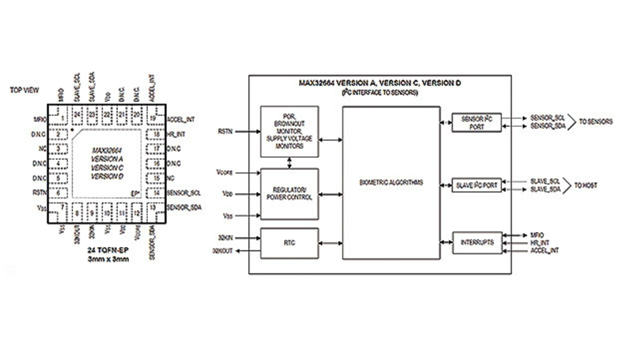 Prinzipiell unterscheiden sich diese MAX32664-Versionen (Bild 6), die es in verschiedenen Gehäusen (16 WLP, 24 TQFN) gibt, lediglich durch ihren Inhalt, also in der Firmware. Den Quellcode veröffentlicht Maxim Integrated nicht, sondern stellt nur eine Binärdatei für die Programmierung zur Verfügung.