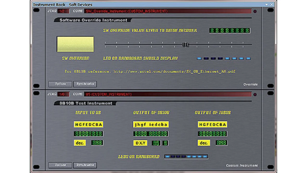 Nachdem die Entwickler das Embedded-Verifikationssystem über die Hard-JTAG-Schnittstelle in das FPGA programmiert haben, erfolgt jetzt die eigentliche Interaktion zwischen dem FPGA und Altium Designer über eine zweite JTAG-Schnittstelle (Soft-JTAG). Das entworfene Embedded-System mit der Soft-CPU ermöglicht den Entwurf komplexer Test-Sequenzen in C und ist in der Lage, auf entsprechende Vorgaben zu reagieren. Bestimmte Triggerimpulse können zum Beispiel eine neue Aktion anstoßen.