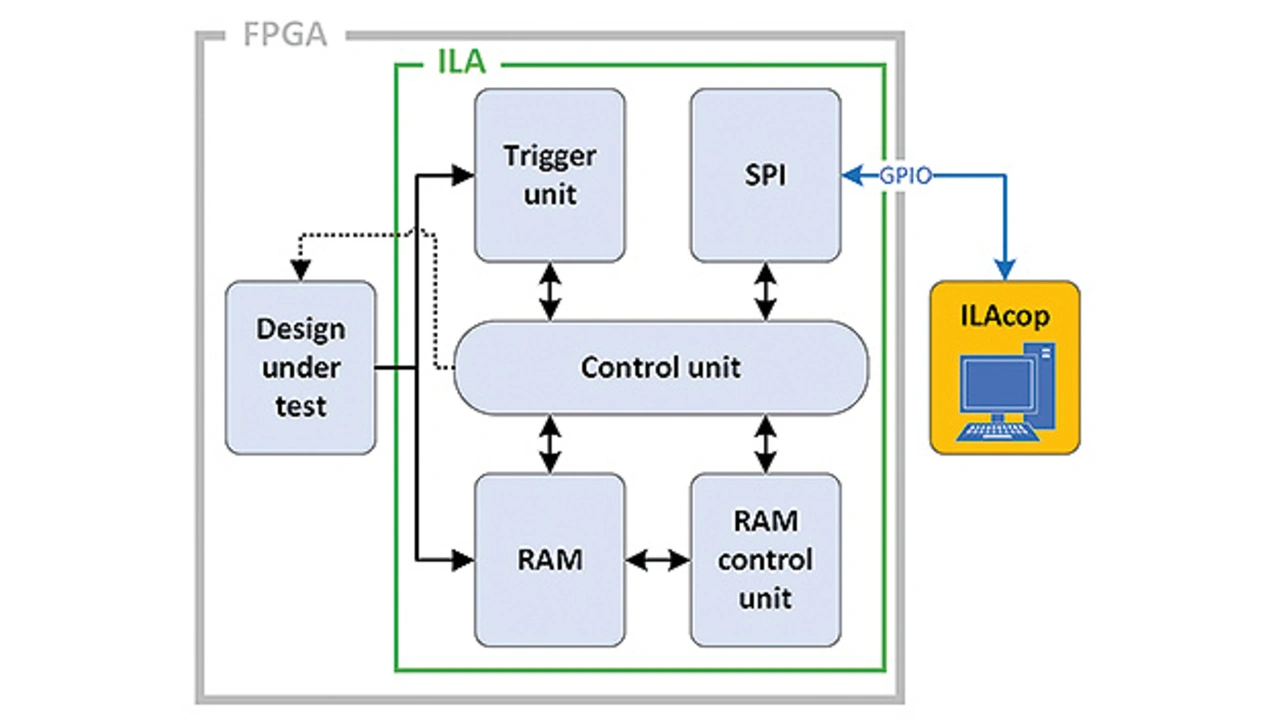 Ein integrierter Logikanalysator, kurz ILA, wird direkt als Gateware in einem FPGA (Field Programmable Gate Array) implementiert und ermöglicht die Auswertung interner Signalverläufe der zu testenden DUT-Gateware (Design Under Test) direkt im FPGA. Dazu wird die ILA-Gateware mit den zu analysierenden DUT-Signalen verbunden und zusammen mit der DUT-Gateware auf einem FPGA konfiguriert. Dies ermöglicht Entwicklern, das Verhalten der internen Signalverläufe ihrer Gateware unter realen Bedingungen in Echtzeit zu überwachen, ohne den normalen Betrieb des DUT zu beeinträchtigen. Auf diese Weise können tiefe Einblicke gewonnen werden, um die Funktionalität komplexer Systeme besser zu verstehen und zu optimieren.