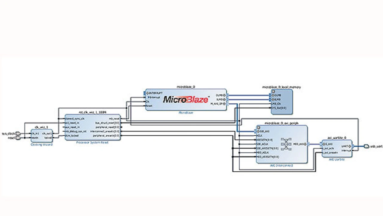 Es gibt mehrere Möglichkeiten eine individuelle Schaltung zu entwerfen. Die schnellste ist der Einsatz des Vivado IP Integrator (IPI). Das Beispiel in Bild 3 zeigt einen Weg mit Verwendung des FPGAs MicroBlaze, um den HBM-Datenverkehr per Software zu generieren. Dies könnte auch in HLS, SDAccel oder im Vitis-Tool mit Hardware-beschleunigtem Speicherdatenverkehr geschehen. Der Einsatz des MicroBlaze als Generator für den Datenverkehr macht es jedoch einfach, die Datenmuster einschließlich der Speicheradressen zu steuern. Außerdem können Entwickler so eine Standardvorlage für den Speichertest verwenden, um Schleifen und diverse Muster zu modifizieren und zu erstellen, um die optimale HBM-Datenübertragungsrate zu wählen.