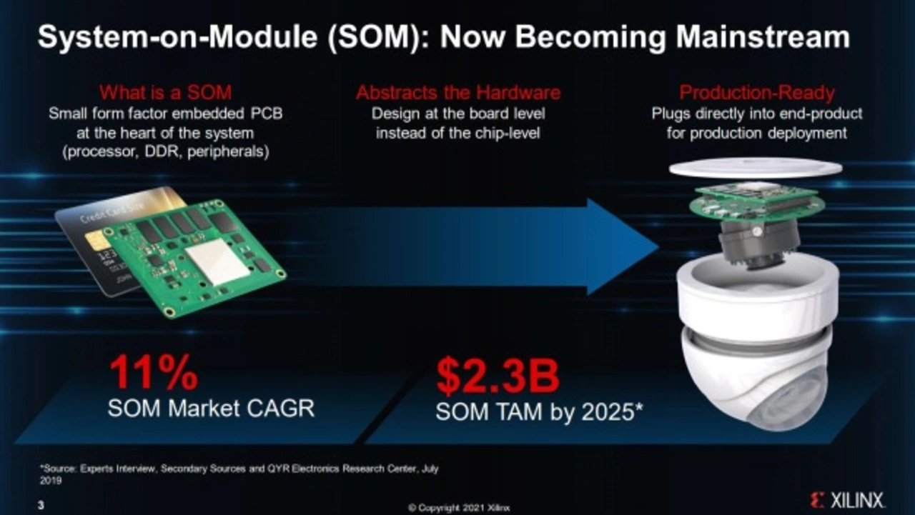 Darüber hinaus lässt sich mit einem SoM mit adaptivem SoC ein System in einem hohen Maß kundenspezifisch anpassen. Das SoM ist darauf ausgelegt, in größere Systeme integriert zu werden und steht dementsprechend in einem vordefinierten Formfaktor zur Verfügung. Adaptive SOMs ermöglichen es, die Vorteile des adaptiven Computing voll auszuschöpfen, ohne ein Chip-Down-Design durchführen zu müssen. Ein adaptives SoM ist allerdings nur ein Teil der Lösung, die Software ist ebenfalls entscheidend.