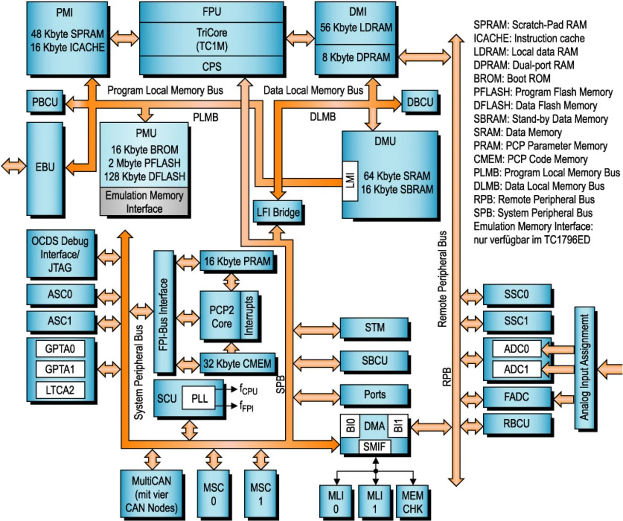 Der TC1796 wird in einem 416-Pin-BGA-Gehäuse („Ball Grid Array“) angeboten und bietet ein Standard-JTAG-Debugger-Interface. Um die komplette Palette der Anforderungen hinsichtlich Emulation und Überwachung des Programms und des Daten-Flusses für diesen Mikrocontroller abzudecken, ist es notwendig, die Daten-Transaktionen auf den internen Bussen überwachen zu können. Der 2 Mbyte große integrierte Flash-Speicher ist über einen 64-bit-Bus und über lokale Cache-Speicher an die CPU angeschlossen, so dass die Programm-ausführung aus den internen Speicherbereichen bedeutend schneller als von externen Speichern (via 32 bit Zugriffsbreite) möglich ist. Diese Komplexität aus mehreren Rechnerkernen und mehreren Bussen hat zur Folge, dass prinzipiell nur ein Bondout-Baustein den notwendigen Grad an Transparenz erfüllen könnte, um alle Anforderungen bezüglich Debugging verwirklichen zu können. Bei einem Takt von 150 MHz ist die Periodendauer von 6,67 ns zu kurz, um die Daten mit einem externen Bondout-Controller zu lesen, zu decodieren, die Entscheidung über eine eventuelle Break-Bedingung zu treffen und ggf. den Prozessor anzuhalten.