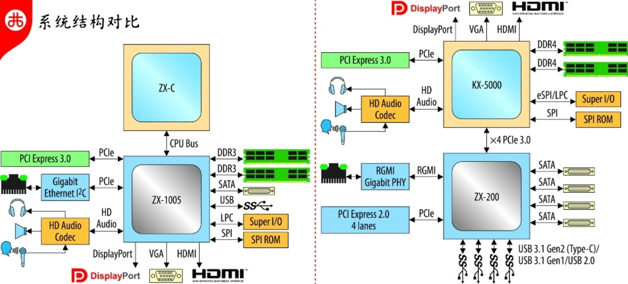 In der Tat versucht Zhaoxin, Meltdown zu nutzen, um ihre eigenen im Inland entworfenen Chips als eine sicherere Alternative zu pushen. Ohne Details der Mikroarchitektur zu kennen, können wir natürlich weder die eine noch die andere Aussage validieren. Die höhere Integration hat natürlich ihren Preis. Die neuen KX-5000-Chips implmentieren in ihrer Quad-CPU-Ausführung 2,1 Milliarden Transistoren, das ist ungefähr siebenmal so viel wie die ungefähr 300 Millionen Transistoren des ZX-C. Die Die-Größe beträgt 187 mm², was Kosten und Chip-Ausbeute negativ beeinflussen wird.