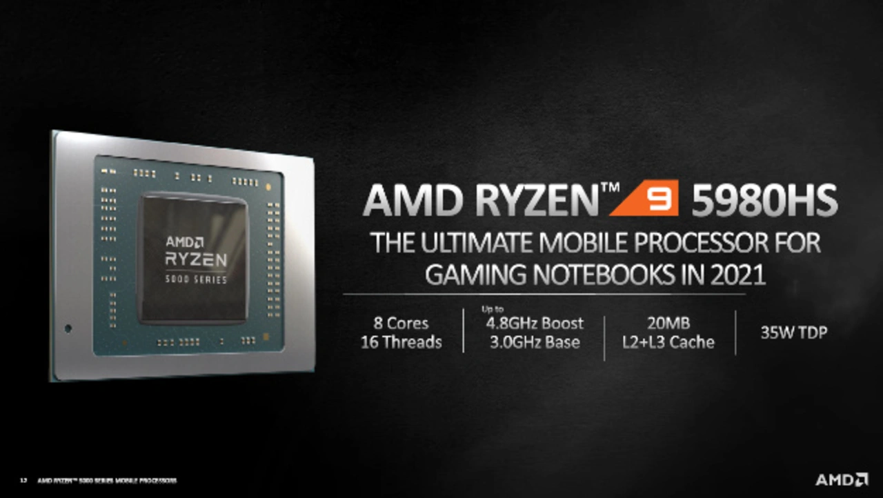 An der Spitze der Leistungsskala stehen die AMD Ryzen 5000 Mobilprozessoren der H-Serie und sind für beeindruckende Gaming-Erlebnisse gedacht, indem sie hohe Rechenleistung mit langer Akkulaufzeit kombinieren. Die H-Serie umfasst die Prozessoren der HX-Serie, die auf höchste Rechenleistung getrimmt wurden und die HS-Serie, die für dünne und leichte Geräte gedacht sind. Der neue AMD Ryzen 9 5980HX-Prozessor bietet eine bis zu 23 % höhere Single-Thread-Leistung und eine bis zu 17 % bessere Multi-Thread-Leistung als die Vorgängergeneration und ist damit die ideale Lösung für Gaming- und Kreativ-Notebooks.