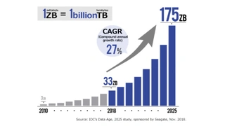 Im Jahr 1987 wurde von Dr. Fujio Masuoka das Konzept des NAND-Flash-Speichers auf der vorgestellt. Das Ziel war die Realisierung eines nichtflüchtigen Speichers mit extrem hoher Dichte, um die Skalierungsgrenze herkömmlicher EPROMs zu überwinden. Der NAND-Flash-Speicher sollte in Zukunft auch Festplattenlaufwerke (HDD) und Magnetbänder ersetzen. Jetzt explodiert die Menge an Informationen geradezu, und die jährlich erzeugten Daten werden im Jahr 2025 175 Zettabyte (ZB) erreichen (Bild 1 siehe Bildergalerie). Die Menschen werden mehr als vier mobile Geräte mit sich führen und 75 % der weltweiten Bevölkerung werden an das Internet angeschlossen sein. Neue Inhalte wie 4K-Video, AR/VR (Augmented/Virtual Reality) erfordern mehr Speicherplatz denn je. Der Trend bei typischen Smartphone-Speichern zeigt, dass sie bis 2030 mit mehr als 10 Terabyte (TB) ausgestattet sein werden. Der 5G-Mobilfunk und das Internet der Dinge (IoT) werden diesen Trend verstärken, und die meisten Daten werden von Maschinen statt von Menschen erzeugt werden.