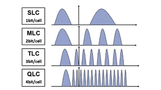 Der Vorteil der MLC-Technologie ist die doppelte Speicherdichte ohne jegliche Hardware-Skalierung. Drei Bits pro Zelle (Triple-Level-Zelle: TLC) wurden 2007 eingeführt und in Kombination mit der Skalierung der lateralen Abmessungen blieb der NAND-Flash-Speicher kontinuierlich auf der Trendkurve der Kosten/Bit nach unten. Der Nachteil der MLC/TLC-Technologie war dabei eine Verschlechterung der Leistung in Bezug auf Geschwindigkeit und Zuverlässigkeit. Die Erhöhung der Bitzahl reduzierte die Anzahl der Ladungen in jeder Ebene und erforderte eine enge Kontrolle der Schwellspannungsverteilung (Bild 2 in Bildergalerie). Die Skalierung der lateralen Transistorstrukturen erhöhte die Interferenz durch benachbarte Zellen. Dank des Speicher-Controllers, der die Programmiersequenz zusammen mit Fortschritten bei anderen Techniken wie ECC (Fehlerkorrektur), Verschleiß-Ausgleich (wear leveling), Speichermüllsammlung (Garbage Collection), Steuerung defekter Blöcke (Bad Block Control) usw. optimiert überwand das MLC/TLC-Prinzip diese Leistungsprobleme. Die hohe Zuverlässigkeit öffnete die Tür zu industriellen Anwendungen wie Datenzentren, Automobilen, Überwachungssystemen, intelligenten Fabriken und medizinischen Anwendungen sowie zu Consumer-Produkten.