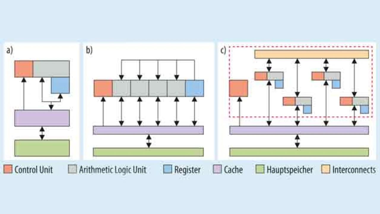 Bild 2 verdeutlicht, was die Unterschiede der DL-Inferenz-Beschleuniger (DLI) gegenüber normalen CPUs und GPUs sind: Die Arithmetic Logic Unit (ALU) einer Single Core CPU kann gleichzeitig nur eine Berechnung durchführen. Noch kritischer ist aber, dass – je nach DNN – Millionen von Input-Werten und Gewichten über einen einzigen Datenbus von einer Random Access Memory (RAM) zur CPU gestreamt werden müssen. Trotz möglichst effizientem Pre-Caching dieser Werte begrenzt dieses sogenannte »von-Neumann-Bottleneck« der klassischen Computer-Architekturen den erreichbaren Berechnungsdurchsatz. Der Vorteil von GPUs ist dagegen, dass viele einfache ALUs parallel arbeiten können, und das parallele Speicherinterface von GPUs eine sehr hohe RAM-Bandbreite aufweist. Der Kontrollfluss in allen ALUs wird aber von derselben Control Unit (CU) gesteuert, sodass in jeder ALU die gleiche Operation durchgeführt wird: Single Instruction Multiple Data (SIMD). Etwas flexibler sind Single-Instruction-Multiple-Thread-Architekturen (SIMT), bei denen einzelne ALUs wenn nötig auch Operationen auslassen können.