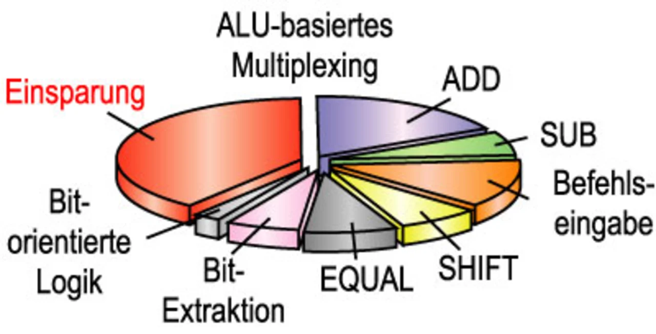 Die Funktion des „Pattern Matching“ in den Multiplexern wurde modifiziert, indem ein ALU-Befehl OR/AND zur Auswahl-Eingangslogik (Select) der Multiplexer hinzugefügt wurde. Die Verwendung der Multiplexer ermöglicht es, das „Pattern Matching“ aus dem Haupt-Datenpfad der ALU herauszunehmen.