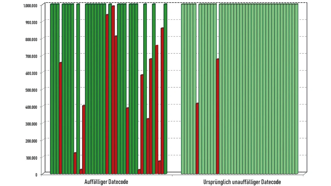 Auch die Ergebnisse verschiedener Datecodes unterscheiden sich bei einigen Herstellern massiv. So fällt bei einem Hersteller im 25°C-Endurance-Test nur ein Datecode aus, während alle anderen Datecodes den Test fehlerfrei bestehen.